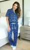 This moonlight floral set features a stunning floral print in a calming blue color. The perfect addition to your pajama collection, it offers both comfort and style. Made with high-quality materials, it guarantees a peaceful and restful night's sleep.